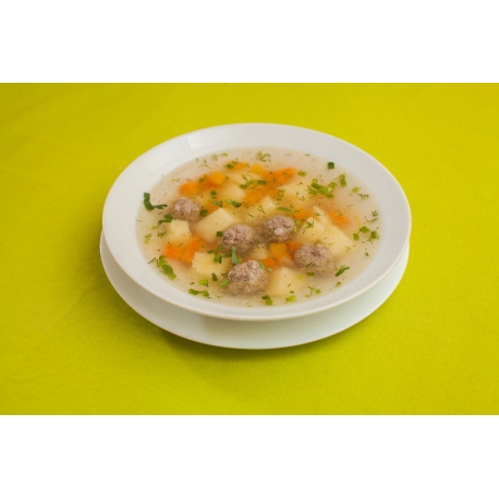 Состав: Фарш из мяса кур, рис ТМ "Родные Края", картофель, морковь, лук протертый, специи/лавровый лист, соль, сахар. КБЖУ на 100 гр: 24/1,7/0,9/2,3 Выход 1 порции 300 мл.
